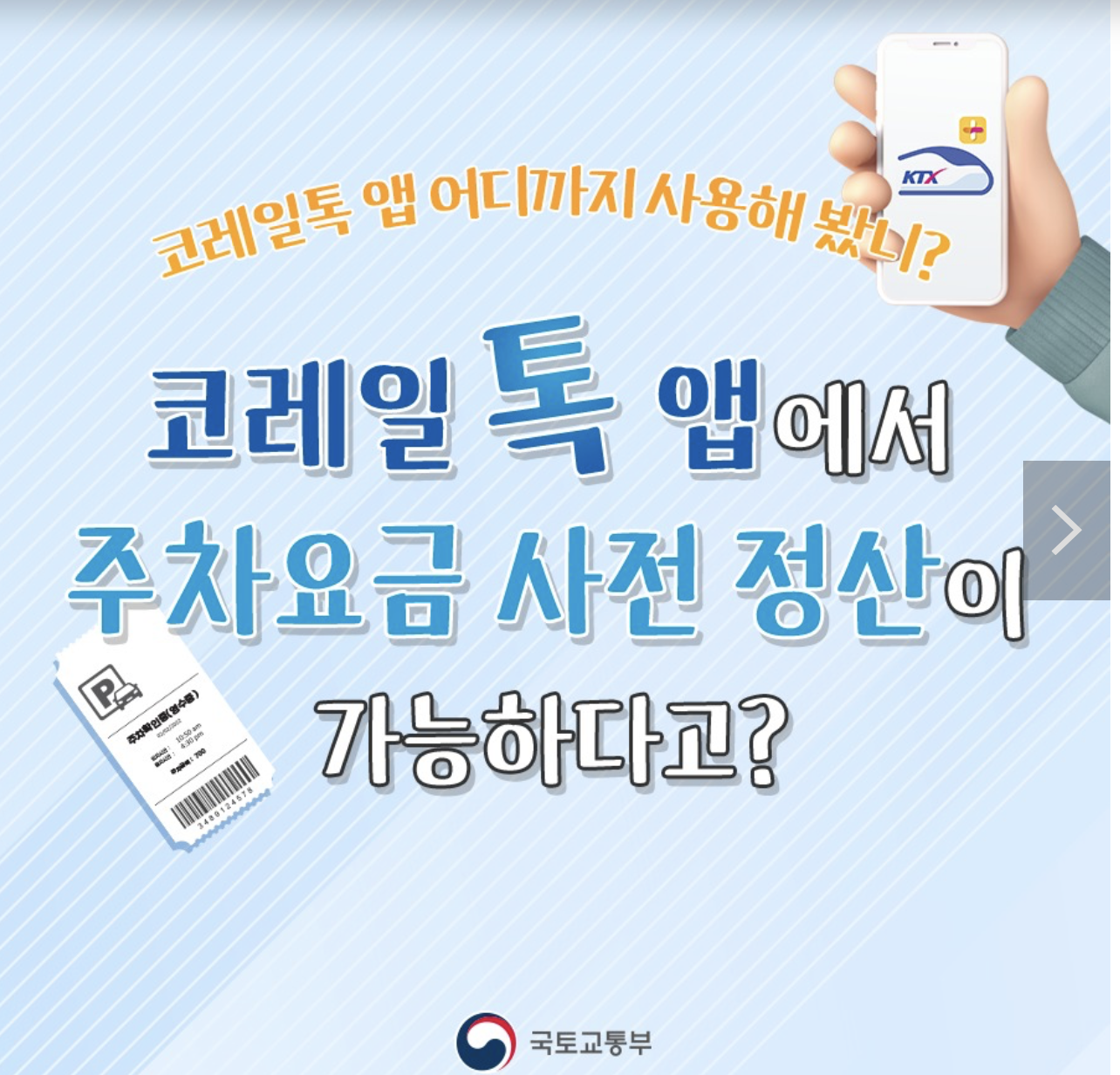 코레일톡 앱에서 편리하고 빠르게 주차요금 사전 정산이 가능하다는 사실 알고 계신가요?