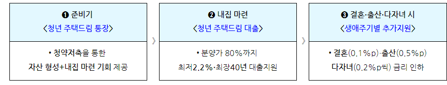 | 생애주기별 금리 추가 인하 | 결혼(0.1%포인트), 출산(0.5%포인트), 다자녀(0.2%포인트) 대출금리 하한선 연 1.5% |