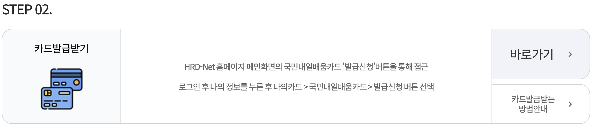 직업훈련포털 로그인 후 국민내일배움카드 발급신청에서 신청서를 작성해 제출하면 됩니다.